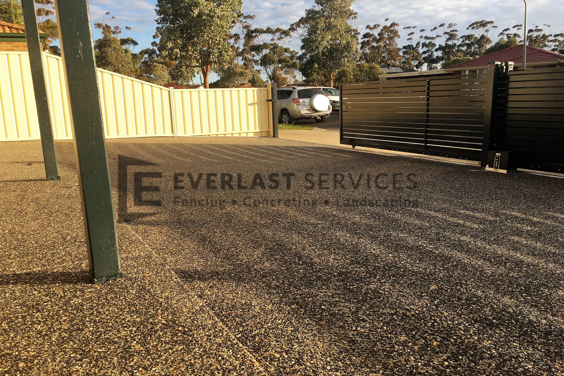 EA65 – Exposed Aggregate + Motorised Double Gate